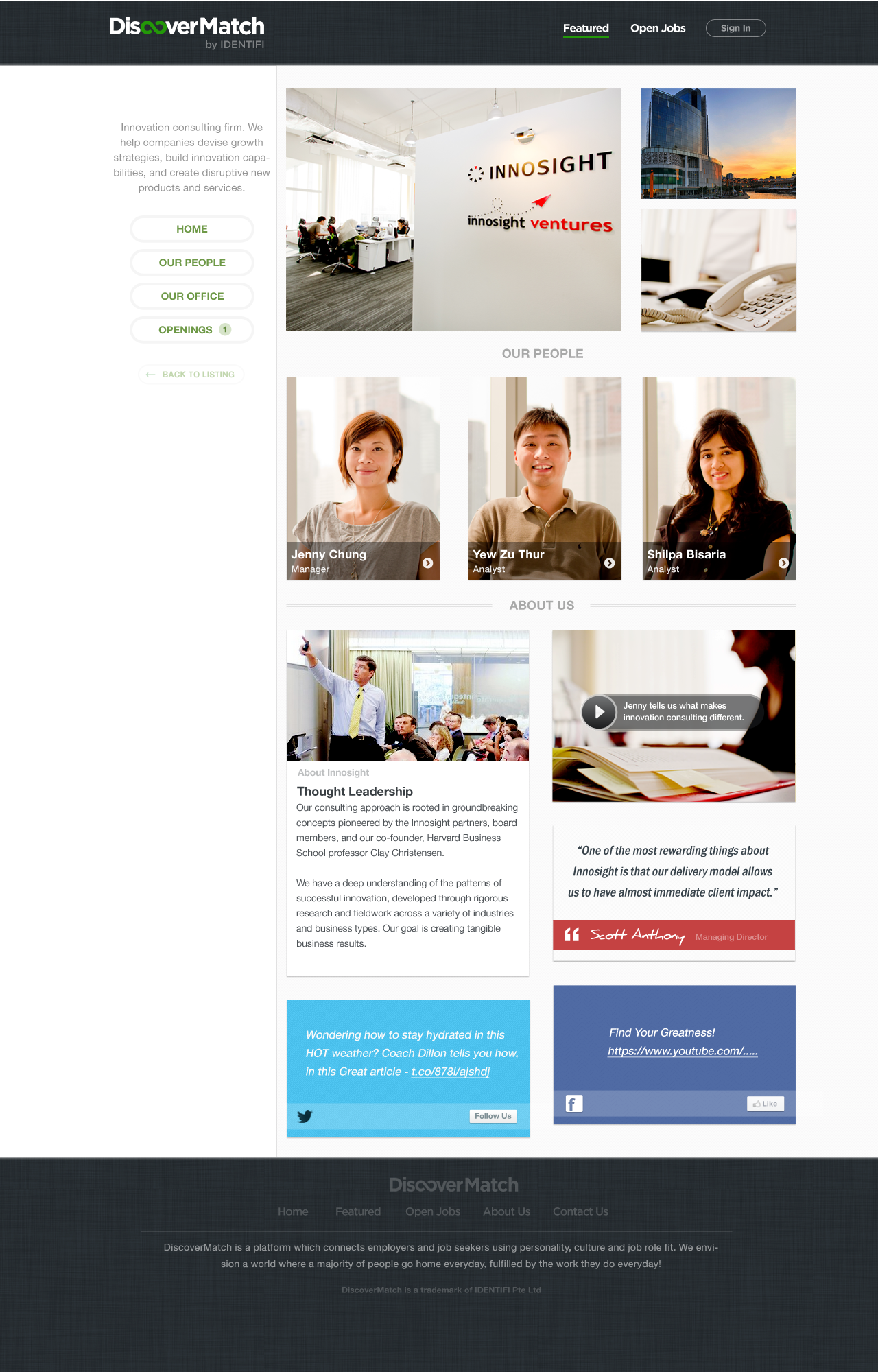 At Identifi Generation Y is the major segment of society that we assist and work with. Our research has shown that company culture, people and the workspace are critical components in decisions to take up particular opportunities. In light of this, we are in the initial phases of launching a new service called Discover Match. It provides companies with an attractive platform to display their company culture, people and workspace. This space helps companies attract talent to apply directly as well as follow the company for future updates.