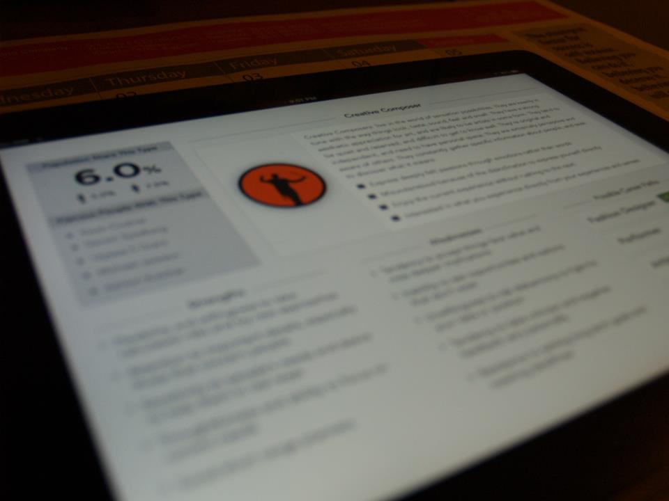 The information in the report includes a detailed overview of the candidates personality for 25 trait types along with detailed information regarding their strengths and developmental areas. The app is helpful for individual who are looking understand themselves better, specially for the those who want to know more about themselves and where they best fit at work via the work task preferences. To Download the App: Click Here